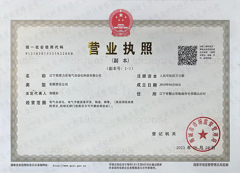 辽宁英菲力尔电气自动化科技有限公司专业从事变频器及各种高低压工业电气、输配电成套设备、工控PLC、DCS自动化设备的生产、销售及相关领域的技术咨询、技术服务;并承揽各项电气自动化、仪表工程的设计、安装、调试等业务。
